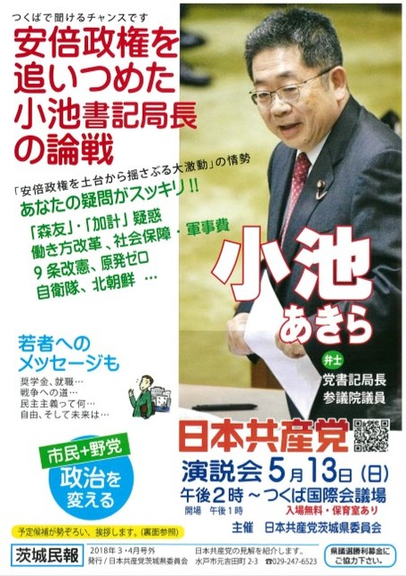 小池晃党書記局長・参議院議員がつくばに!【日本共産党演説会のごあんない】(終了)